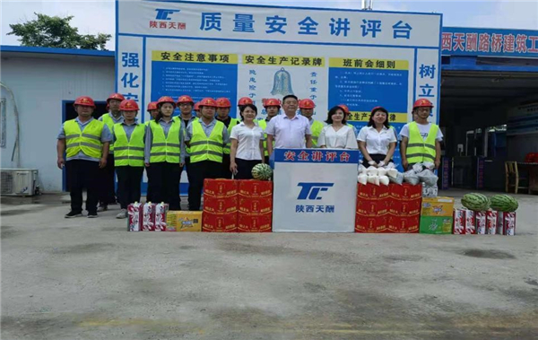 2021年7月29日上午,烈日炎炎,酷暑難耐。陜外經(jīng)貿(mào)集團(tuán)黨委宣傳部部長(zhǎng)張斌、團(tuán)委副書(shū)記楊文莉一行,赴天酬公司蒲城四季花城開(kāi)發(fā)項(xiàng)目,為堅(jiān)守在項(xiàng)目施工管理一線職工送來(lái)清涼。