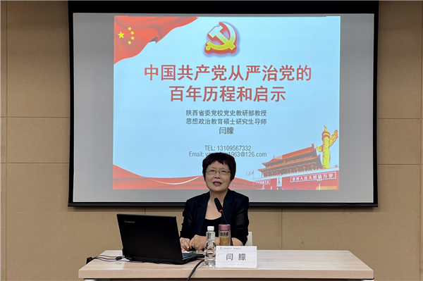 本次專題黨課邀請陜西省委黨校黨史教研部閆朦教授,以《中國共產(chǎn)黨全面從嚴(yán)治黨的百年歷程和啟示》為題,圍繞黨的歷史發(fā)展主題和主線,從新民主主義革命時期黨的建設(shè)偉大工程的初步構(gòu)建、社會主義革命和建設(shè)時期執(zhí)政黨建設(shè)曲折探索、改革開放背景下黨的建設(shè)新的偉大工程、十八大以來從嚴(yán)治黨到全面從嚴(yán)治黨的新部署、歷史的啟示五個方面進行了全面詳細的專題輔導(dǎo)。閆教授強調(diào),我黨自誕生以來,就特別強調(diào)黨的紀(jì)律和組織的力量,黨的紀(jì)律是黨的生命,我們黨百年的奮斗歷程表明,如果沒有嚴(yán)明的紀(jì)律,黨就不可能生存和發(fā)展。
